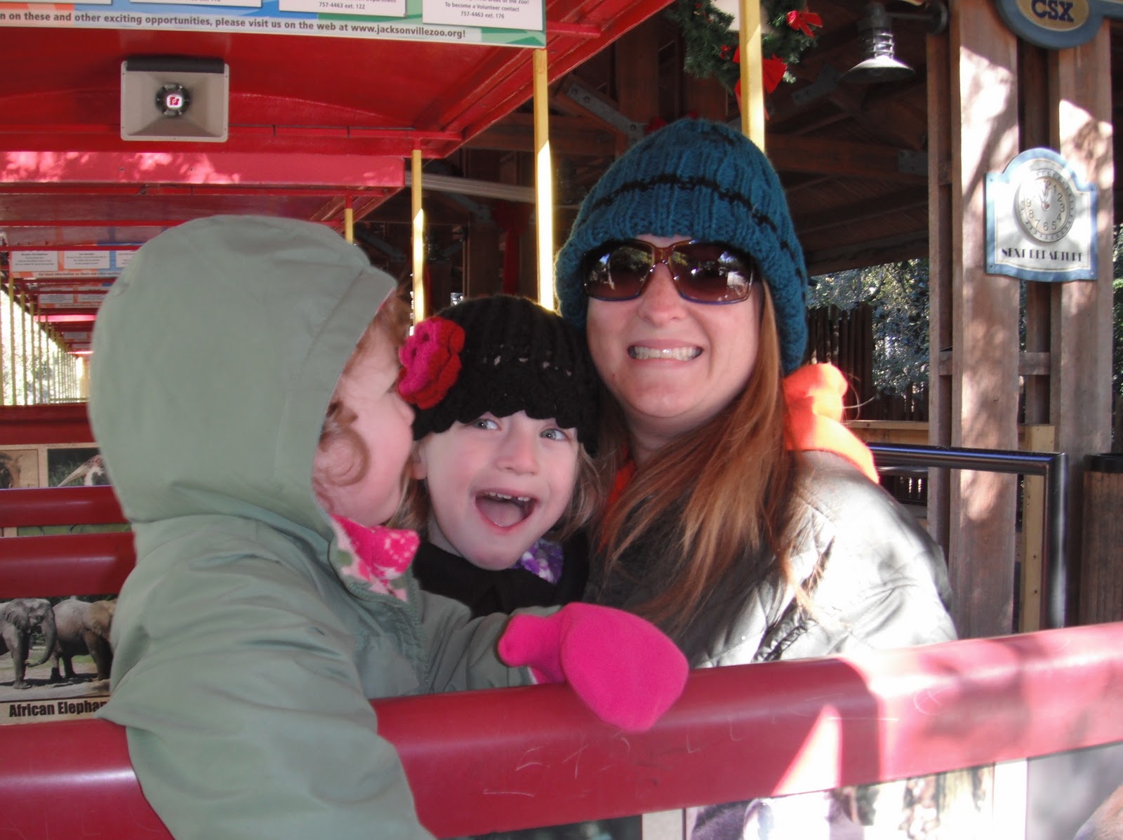 Today we made plans with Aunt Liz to drive up to Jacksonville to take a trip to the zoo. Unfortunately, we had already made those plans before we knew it was going to be below 30 degrees when we left home - and that it wouldn't get above 40 or so for the whole time we were there! So, we got the girls bundled up in hats, gloves, and all the most winter-y clothes they own.